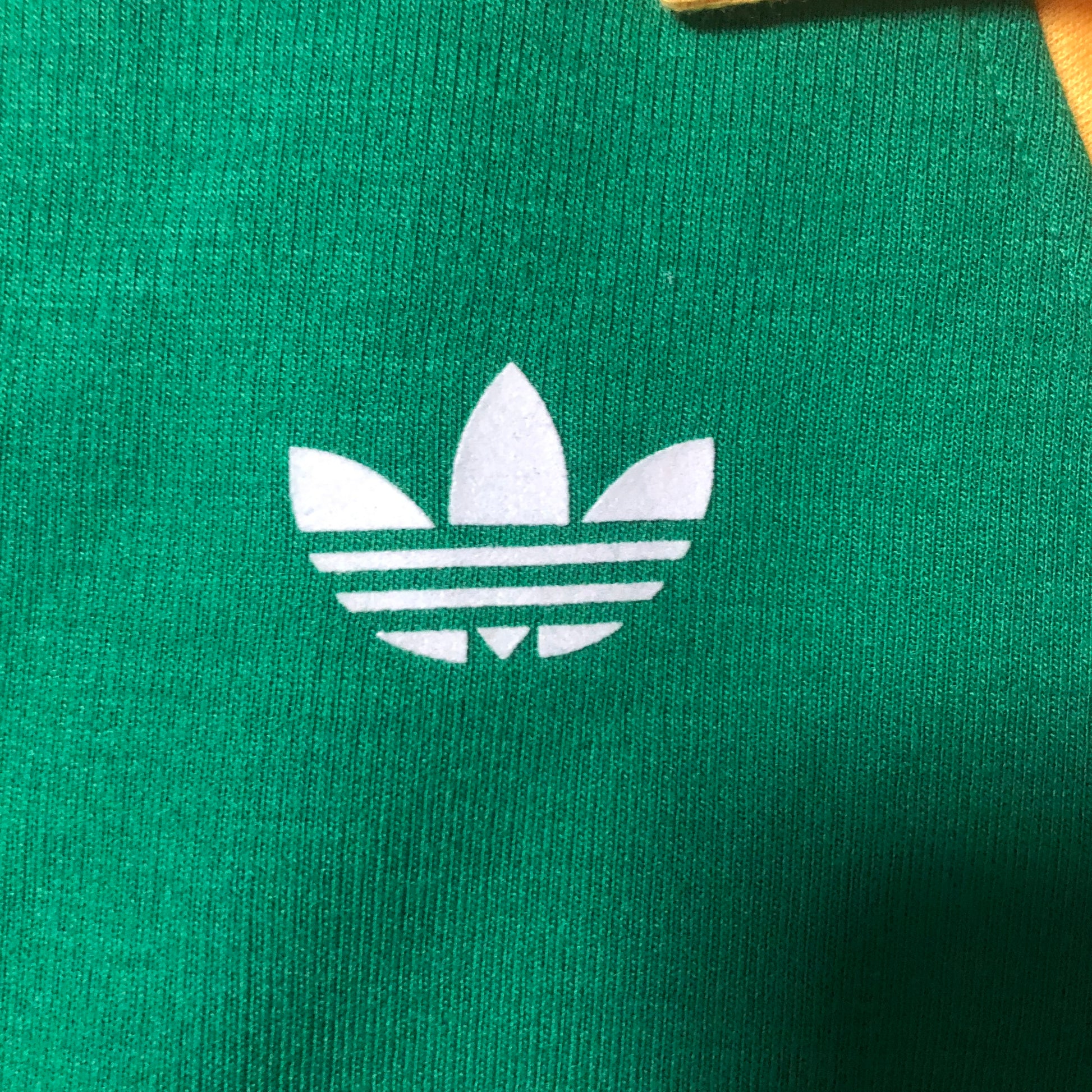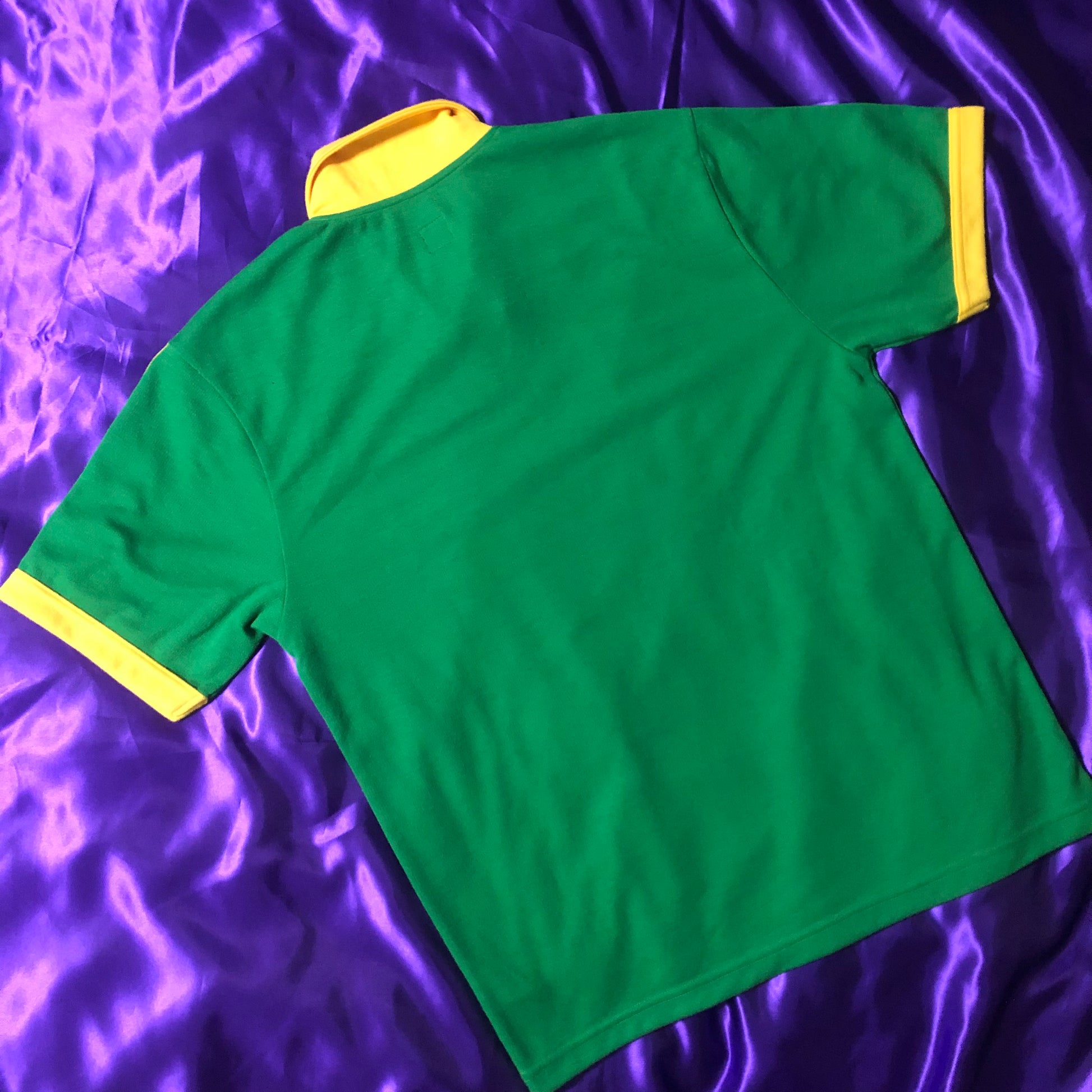 ブラジルを思わせるようなカラーリングのコットン地サッカーシャツ。